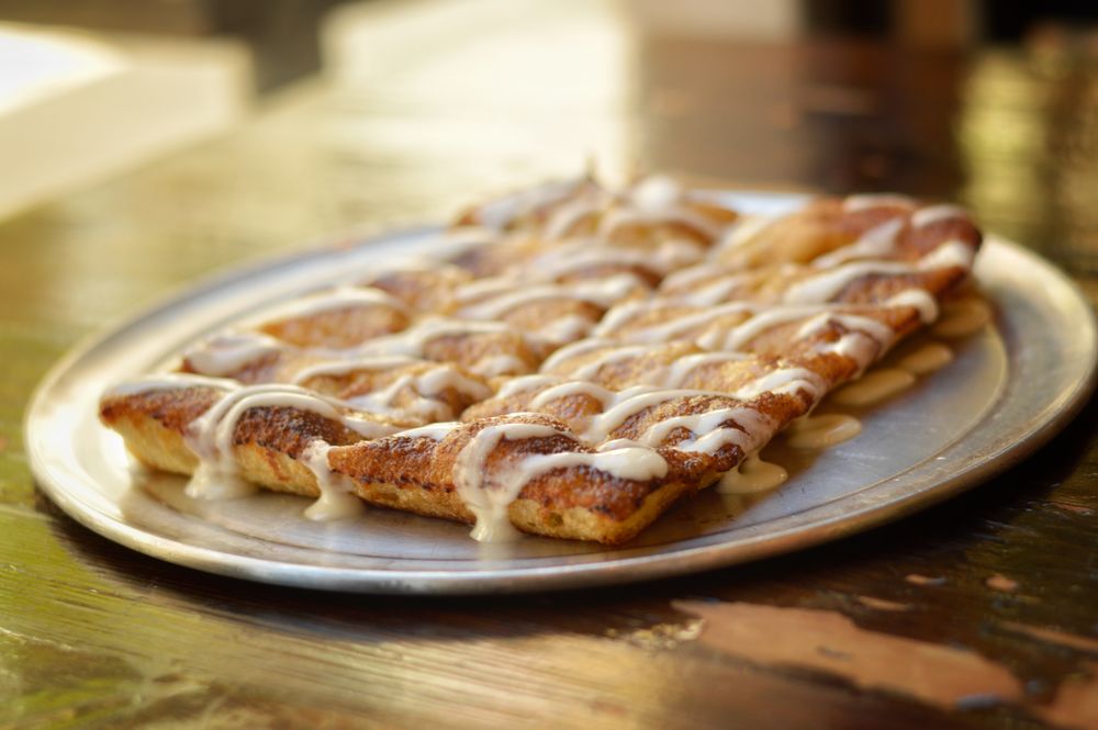 Bread topped with butter, cinnamon sugar & cream cheese icing